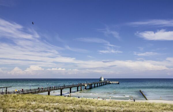 Der Zingst, die östliche Spitze der Halbinsel. Große Teile gehören zum Nationalpark Vorpommersche Boddenlandschaft. Zu diesem zählt auch einer der größten Kranichrastplätze Europas. Das Ostseeheilbad Zingstbegeistert mit langen Stränden, vielfältiger Kultur und einem renommierten Umweltfotofestival.